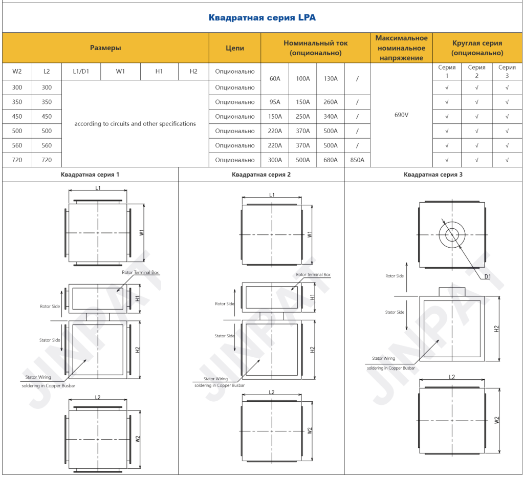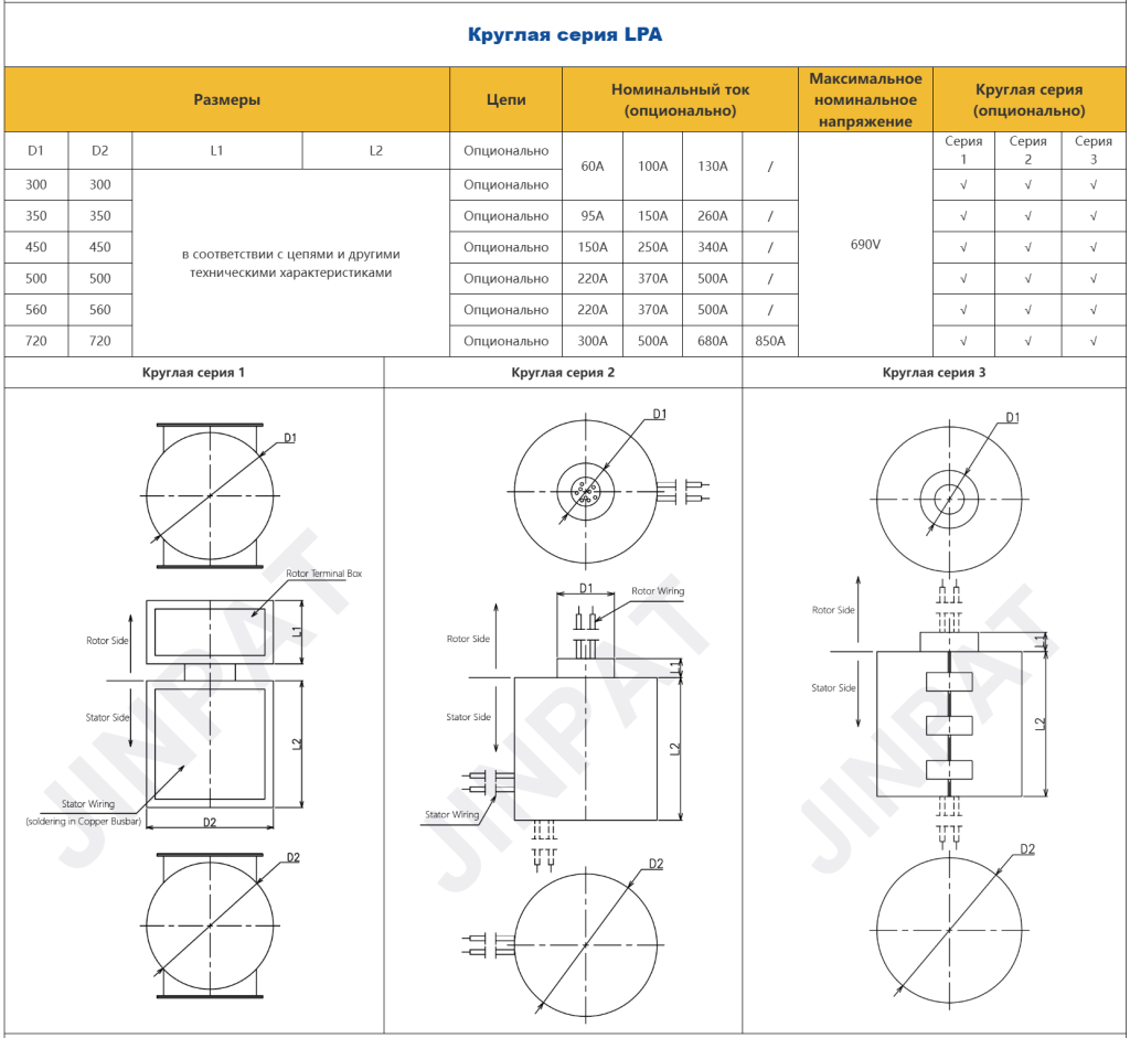 Высокомощный токосъёмник JINPAT разработан для стабильной передачи большого тока, мощности и сигналов в системах с непрерывным вращением. Благодаря конструкции с полым валом устройство обеспечивает удобный монтаж, эффективное охлаждение и простое техническое обслуживание.